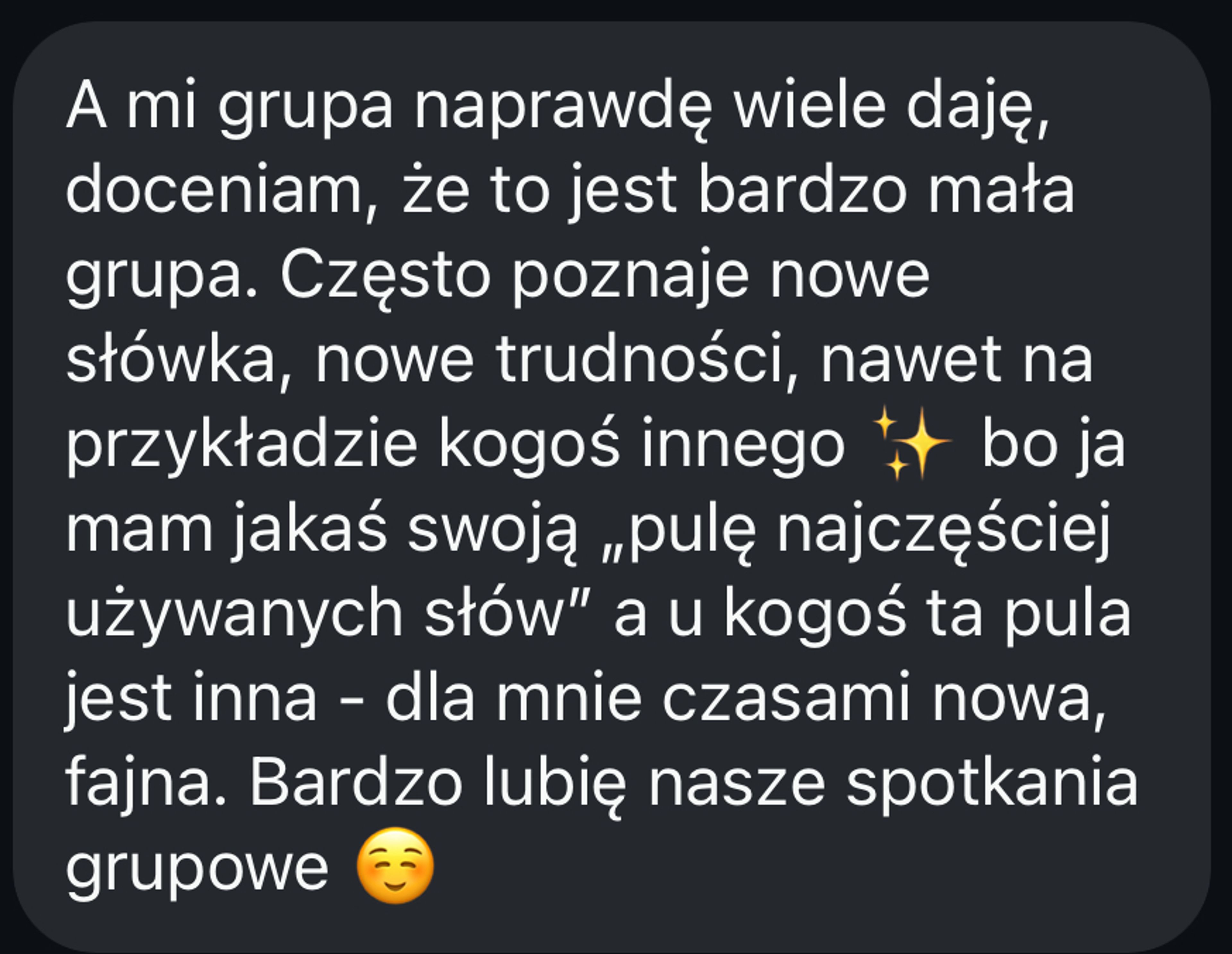 Ta głęboka znajomość sprawia, że nasze wyjaśnienia trafiają w sedno, a nasze kursantki po lekcji mówią "wreszcie ktoś mi wytłumaczył czasy po ludzku". Nie musisz szukać odpowiedzi w Google o 23:00, bo my już mamy rozwiązanie — sprawdzone na setkach kursantów przed Tobą.