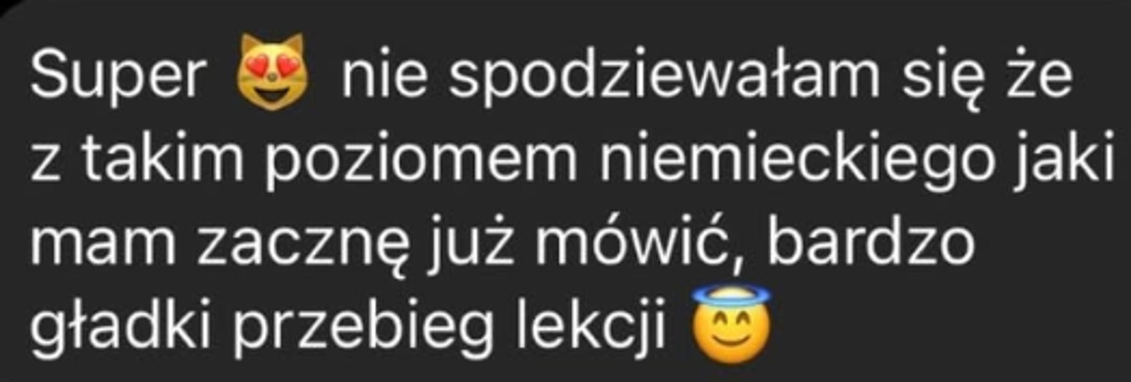 Mamy 10 lat doświadczenia w nauczaniu języka niemieckiego na wszystkich poziomach. Niemiecki to jedyna rzecz, którą robimy — i robimy to od lat. Nie uczymy dziesięciu języków na raz, skupiamy się na niemieckim. Znamy go od podszewki: wszystkie gramatyczne pułapki, podstępne przyimki i niuanse, które giną gdzieś między lekcją 1 a 47 na masowych kursach.
